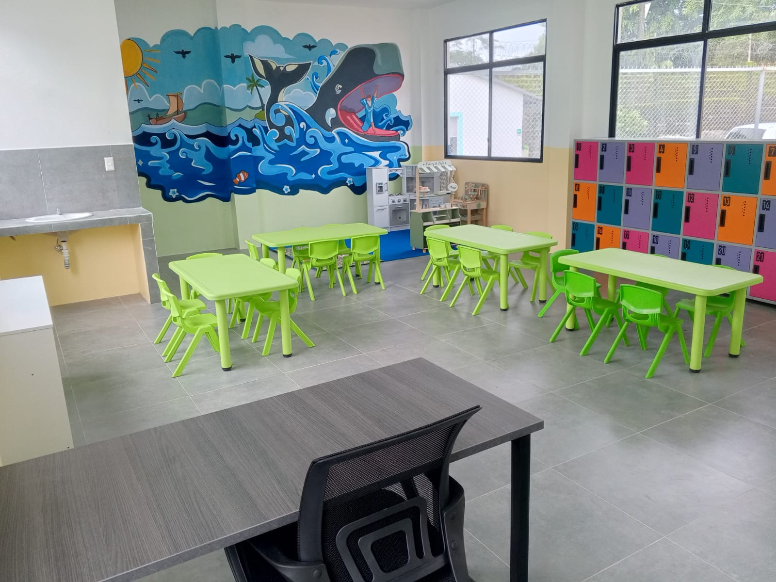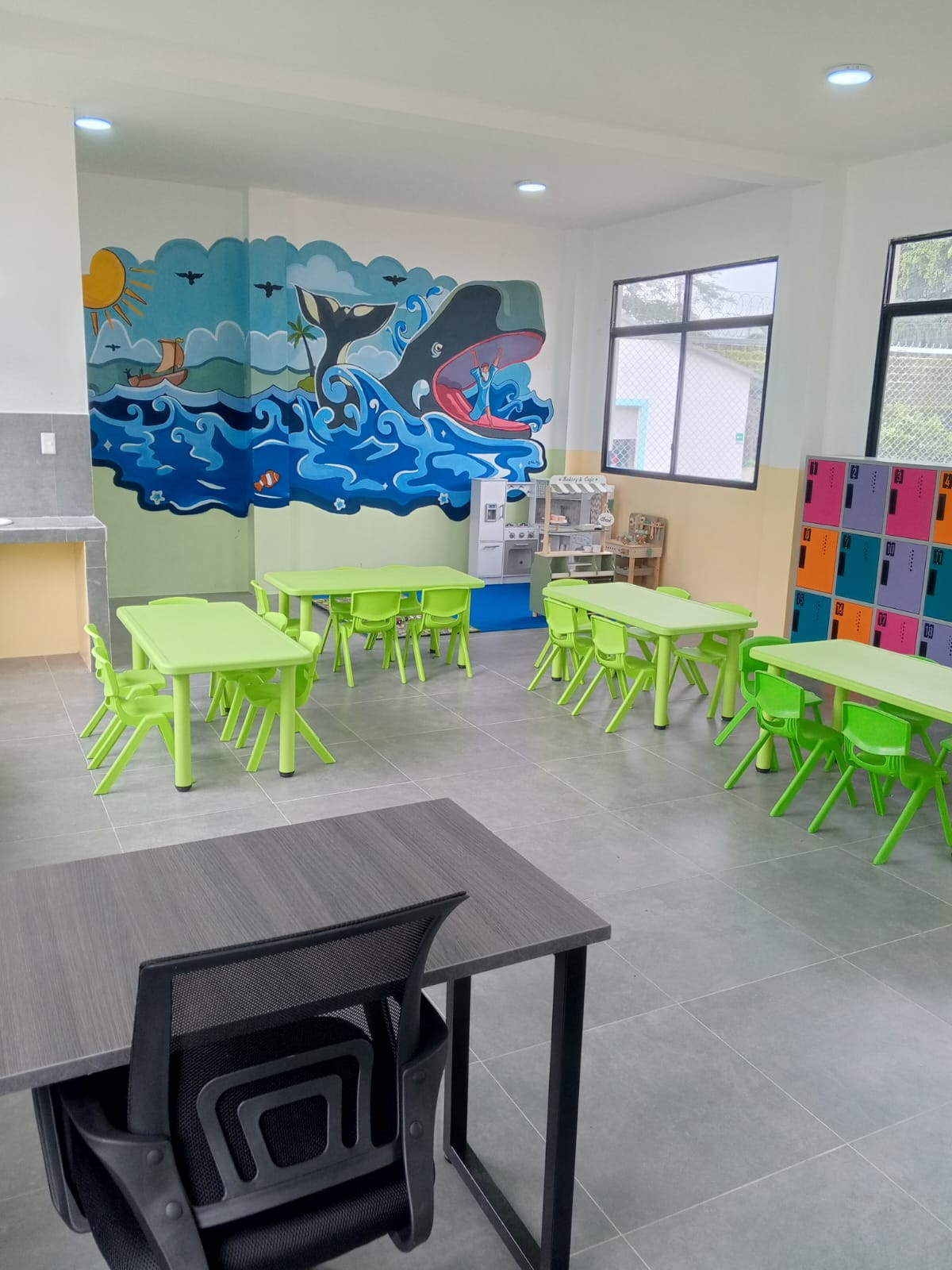 La institución contará con aulas pedagógicas, área recreativa, auditorio, cancha deportiva y sala de computación, diseñadas para favorecer el aprendizaje, el juego y el desarrollo integral.